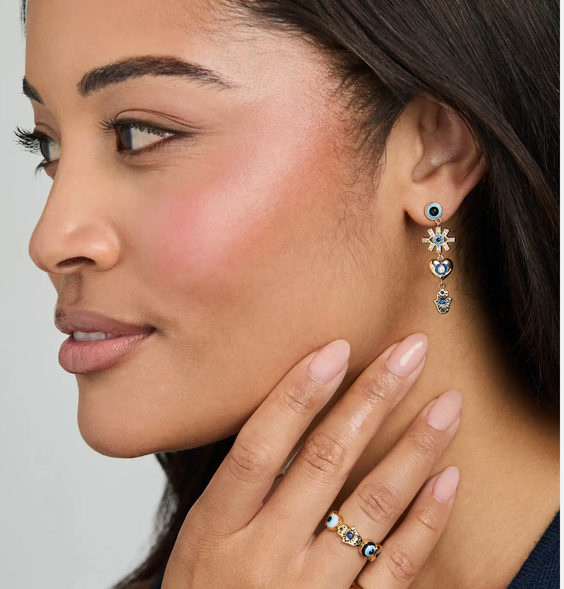 Featuring a unique design, this Evil Eye Band Ring offers both style and spiritual protection. Made with quality materials, this ring showcases the traditional symbol of the evil eye, known for warding off negative energy and bringing good luck. A must-have for those seeking both fashion and well-being.