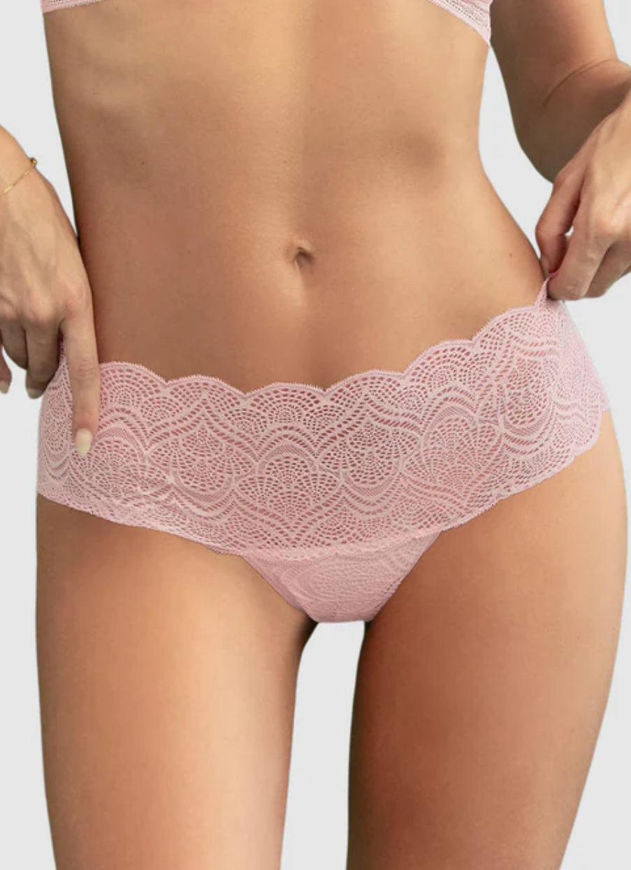 The Leonisa thong combines comfort and style with its elastic lace design that fits perfectly to your body. No more visible panty lines or irritation thanks to its seamless and waistband-free construction. The central back cut enhances your natural curves while the 100% cotton lining provides freshness. Produced sustainably in Colombia with fair labor practices. Made of 86.1% polyamide and 13.9% elastane for a comfortable fit.